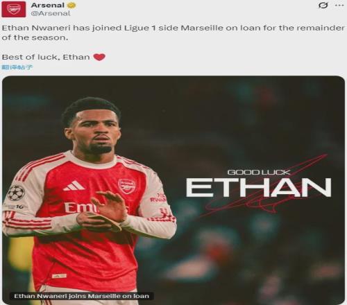 官方:阿森納宣布恩瓦內里租借加盟馬賽直到本賽季結束。