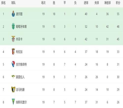 本場(chǎng)過(guò)后,波爾圖在葡超已經(jīng)實(shí)現(xiàn)11連勝,上一次他們?cè)诼?lián)賽中丟分,還是在主場(chǎng)戰(zhàn)平本菲卡,這也是賽季至今,波爾圖在葡超唯一一場(chǎng)沒(méi)贏的比賽,其他18場(chǎng)全勝。幾乎完美的發(fā)揮,讓波爾圖在積分榜上遙遙領(lǐng)先。如今排名第二的葡萄牙體育,落后波爾圖7分,根本無(wú)力威脅領(lǐng)頭羊的位置。