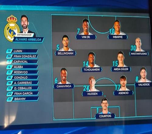 皇馬首發(fā):庫爾圖瓦/巴爾韋德、勞爾·阿森西奧、懷森、卡馬溫加/居萊爾、楚阿梅尼、貝林厄姆/馬斯坦托諾、姆巴佩、維尼修斯