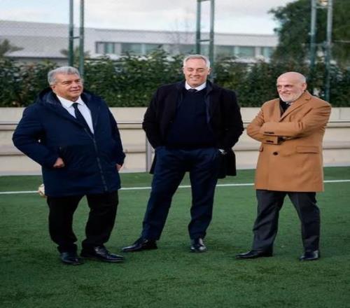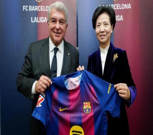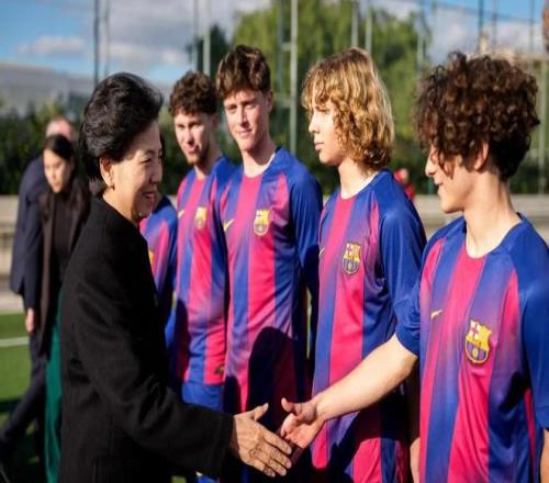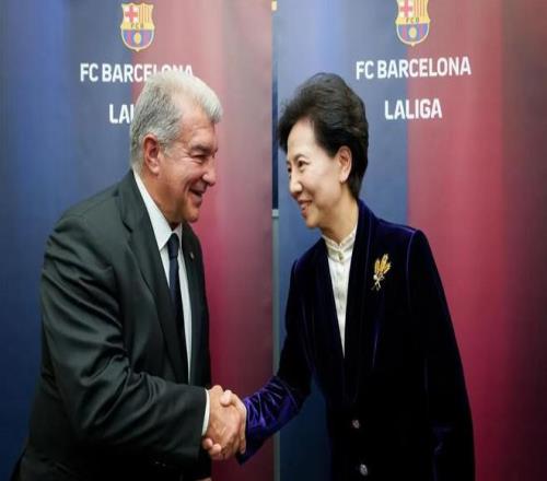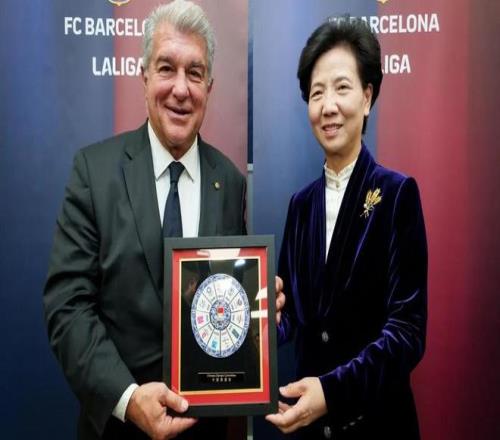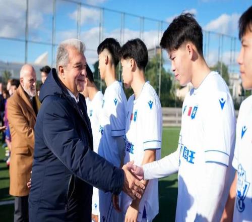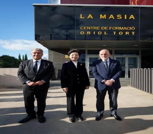 巴塞羅那足球俱樂部主席拉波爾塔與西甲聯盟主席特巴斯,共同歡迎由中國國務委員諶貽琴率領的中國代表團訪問巴薩拉瑪西亞青訓營。