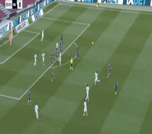 第29分鐘,拉什福德左路內切遠射被擋,皮球沒有出禁區。奧爾莫第一時間送出冷靜分球,萊萬在禁區內完成調整,輕巧推射破門,巴薩1-0領先。