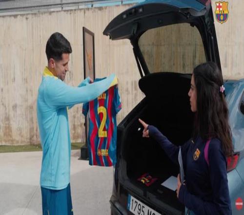 我們給你準備了幾個驚喜。我們一起去后備箱。這是我們給你的第一個禮物,是給你女兒們準備的球衣。如果可以的話,你能打開并展示給球迷看看嗎?