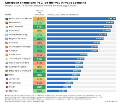 根據德勤財報的數字顯示,巴薩在2024-25賽季的人員總成本是5.15億歐元(4.42億英鎊)。所以巴薩想要滿足工資帽要求,就需要填補這一塊的空白。