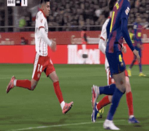 第87分鐘,替補登場的赫羅納打進絕殺,但這一次進攻的過程中,埃切維里踩到了孔德的腳踝。