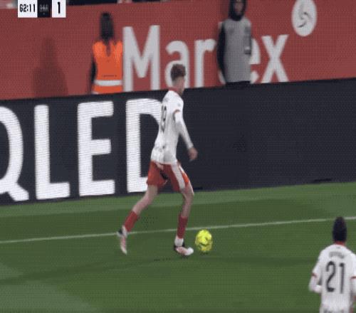 上半場只有1分鐘的補時,奧爾莫的速率更快,布林德慢了半拍,直接放倒奧爾莫,裁判判罰點球,布林德雙手抱頭。