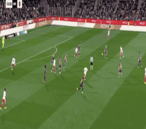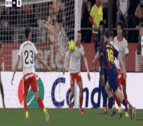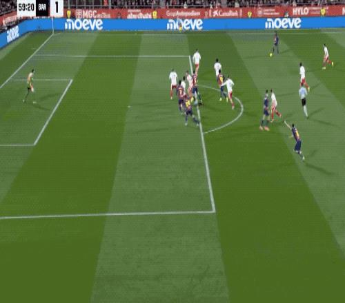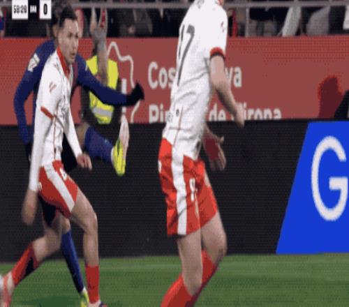 第24分鐘,拉菲尼亞接球后的停頓攪亂了赫羅納的防守,費蘭·托雷斯兜射遠角,皮球稍稍偏出。