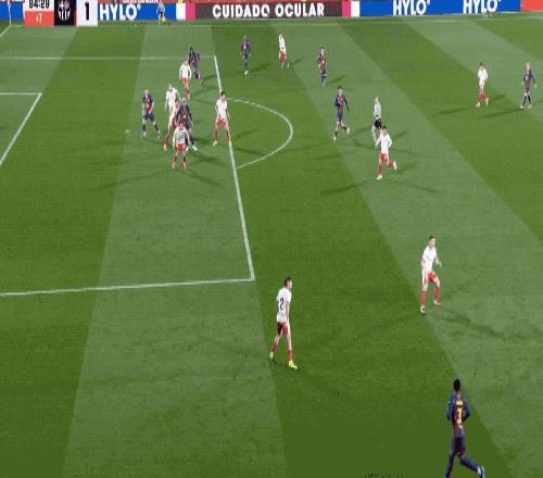 第16分鐘,奧爾莫送出傳球,亞馬爾的停球足夠舒服,快速突破形成單刀,但最后的射門被加扎尼加撲了出來。
