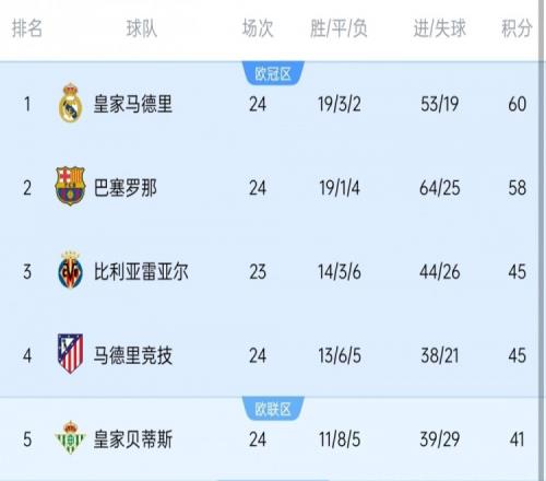 領跑西甲輪次排名:皇馬1148輪最多,巴薩847輪次席