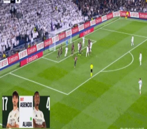 第67分鐘,勞爾-阿森西奧搶點頭槌破門,皇馬2-0!