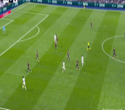 第28分鐘,皇馬進攻,姆巴佩將球踢出底線