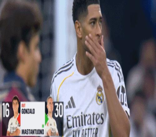 第46分鐘,皇馬換人調整,馬斯坦托諾、居萊爾替補登場