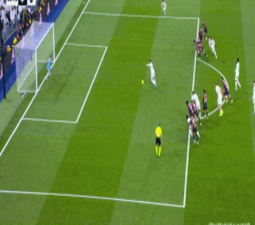 第14分鐘,貝林厄姆送任意球,巴勃羅-馬丁內斯主罰打門被擋