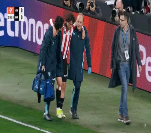 從比賽開始雙方便展開了積極的攻勢,主場作戰的畢爾巴鄂競技數次打到進攻腹地,而前場的高壓逼搶,進一步加劇了巴薩防線緊迫感。但是比賽不到10分鐘,無奈戈麥斯不慎扭傷,傷勢較重,納瓦羅緊急替補登場。