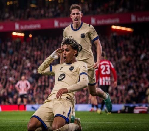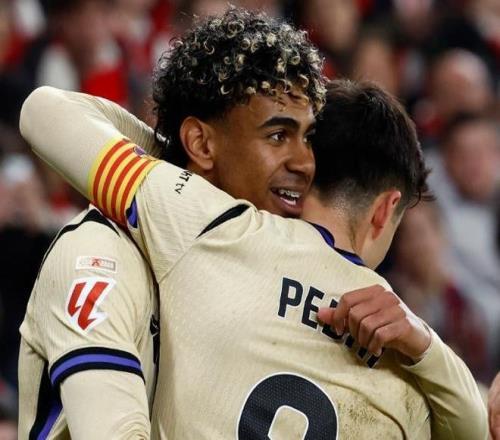 從本場比賽的進程來看,相信所有人都會發出感嘆,巴薩的“小孩哥”又用一次神仙球,解決了所有問題。上半場,主場作戰的畢爾巴鄂競技給巴薩制造了巨大的麻煩。開場僅僅幾分鐘,坎塞洛就險些自擺烏龍,他的解圍球重重砸在橫梁上,驚出客隊一身冷汗。隨后戈麥斯因腳踝扭傷離場,更是讓比賽的激烈程度肉眼可見。第42分鐘,伊尼亞基·威廉姆斯曾打入一球,但越位在先被判無效。整個上半場,巴薩的進攻陷入了畢爾巴鄂競技高強度的絞殺之中,甚至沒有一腳射正,創下了本賽季至今的最差紀錄。