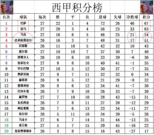 積分榜方面,巴薩今天險勝贏球后,再次將對皇馬的優(yōu)勢拉大到4分,穩(wěn)住榜首位置。馬競先賽贏球,領(lǐng)先比利亞雷亞爾3分,第3的位置暫時也是穩(wěn)住。保級方面,馬洛卡無力贏球,繼續(xù)深陷降級區(qū)。