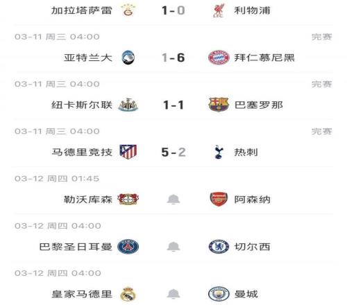 接下來明日還會有曼城、切爾西、阿森納繼續給這項賽事爭面子。相比之下,曼城、切爾西難度太大了,對皇馬、巴黎很難講,輸了也不奇怪。只有阿森納對勒沃庫森機會很大,他們可能會是英超唯一的“榮光”。