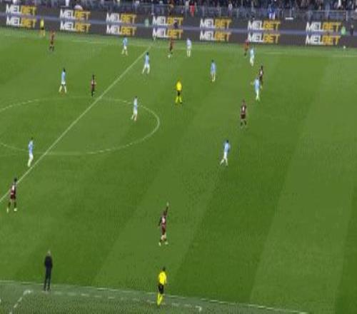 第36分鐘,馬爾蒂尼突入禁區(qū)前低射,邁尼昂沒(méi)收皮球