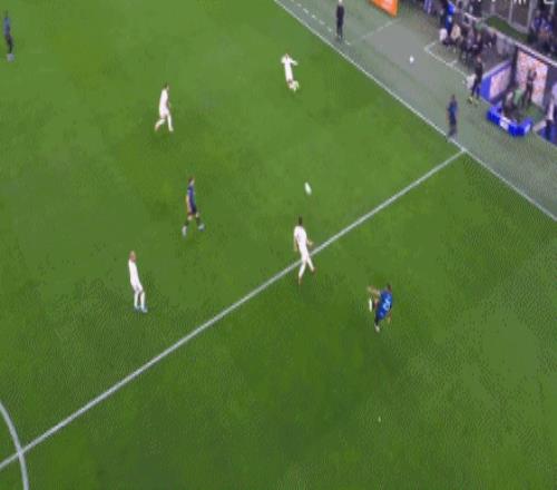 易邊再戰(zhàn),第52分鐘,圖拉姆斜塞再送助攻,勞塔羅插上兜射破門完成梅開二度,比分變?yōu)?-1。