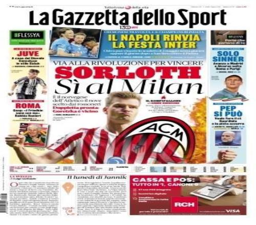 按照《米蘭體育報》的說法,瑟洛特已經同意在今夏轉投米蘭,這位挪威國腳也準備向馬競提出離隊要求。