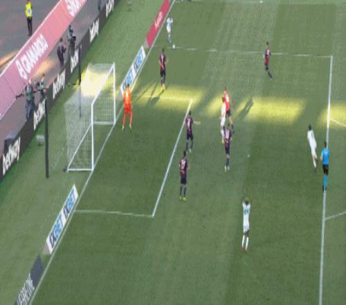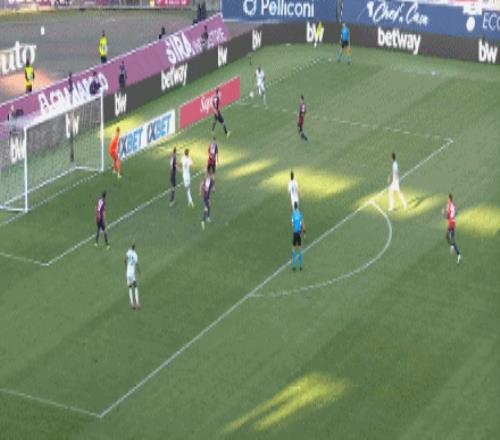 第45+1分鐘,馬倫助攻,艾納維搶點破門,博洛尼亞0-2羅馬