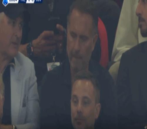 第28分鐘,鏡頭給到看臺,米蘭老板卡爾迪納萊現(xiàn)場觀戰(zhàn)