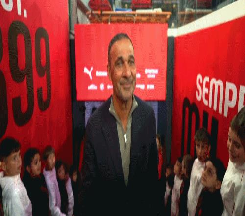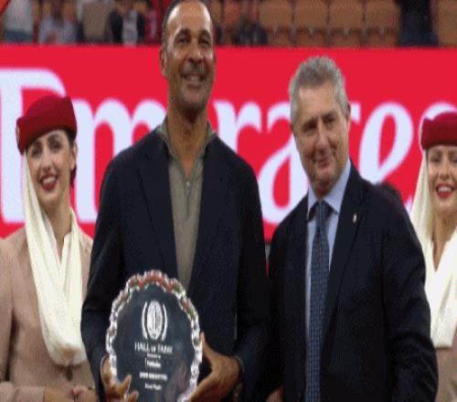 賽前儀式,古利特入選米蘭名人堂,領(lǐng)取獎牌