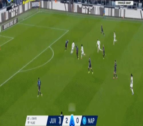第22分鐘,洛卡特利妙傳,戴維對抗后破門,尤文1-0那不勒斯
