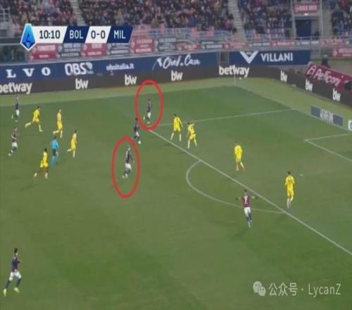 而在比賽初期,主場作戰的博洛尼亞執行高位壓迫并非一無是處,但搶下來的機會都被低效的單打揮霍了。