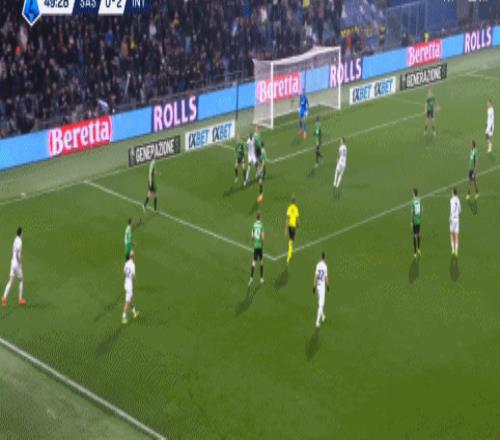 第28分鐘,勞塔羅回撤分球,迪馬爾科高速插上傳中,小圖拉姆前點捅射得手,國際米蘭將比分擴大到了2-0。這是迪馬爾科本場第二次助攻。上半場結束,國米射門、控球、威脅進攻全面占優,薩索洛只能被動防守,找機會打反擊。