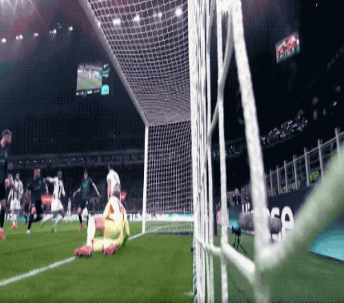 第41分鐘,阿坎吉的頭球被門將奮力撲出,巴斯托尼的補射先后擊中兩側的門柱,尤文圖斯逃過一劫。