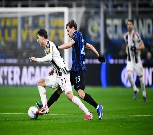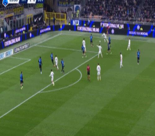 第30分鐘,伊爾迪茲左路一對(duì)一自信突破兜射遠(yuǎn)角,索默獻(xiàn)出精彩的飛身精彩撲出來(lái)球;第34分鐘,蘇契奇禁區(qū)前沿持球靈巧擺脫過(guò)人橫敲,勞塔羅不停球撞射發(fā)力過(guò)猛打偏;第41分鐘,迪馬爾科開(kāi)出角球,小圖拉姆高高躍起頭球攻門(mén)被迪格雷戈里奧神勇?lián)涑觯蹇ㄌ乩鈬鷵糁凶约伊⒅任碾S即展開(kāi)反擊卻被巴斯托尼精準(zhǔn)斷球,卡盧盧背后拉人犯規(guī)拿到第二張黃牌被紅牌罰下。
