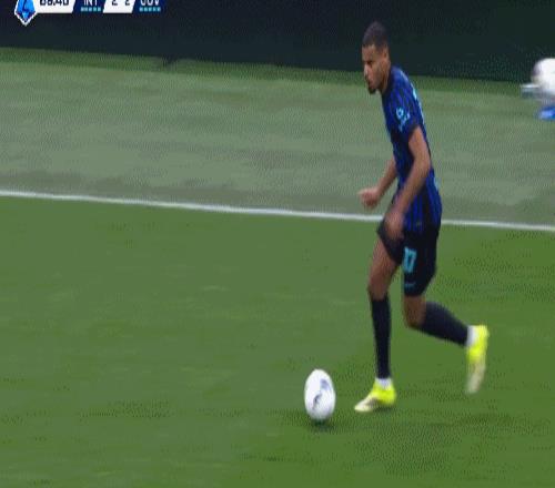 比賽開(kāi)打后第17分鐘,勞塔羅積極反搶斷球,小圖拉姆禁區(qū)前沿持球分向右側(cè),路易斯-恩里克似傳似射推到門(mén)前,小坎比亞索伸腿一擋改變路線(xiàn)不慎將球擋進(jìn)了自家球門(mén),1:0!第26分鐘,卡盧盧右路斜傳,麥肯尼倒三角分球,喬納森-戴維前點(diǎn)虛晃一槍?zhuān)】脖葋喫骱簏c(diǎn)墊射將功補(bǔ)過(guò),1:1!