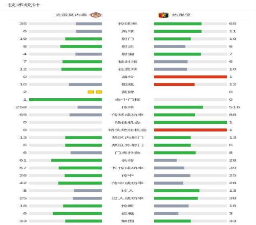 北京時(shí)間2月15日意大利足球甲級(jí)聯(lián)賽第25輪,克雷莫內(nèi)塞主場(chǎng)迎來(lái)熱那亞的挑戰(zhàn)。全場(chǎng)比賽結(jié)束,兩隊(duì)均未攻破對(duì)方球門(mén),最終克雷莫內(nèi)塞0-0戰(zhàn)平熱那亞。