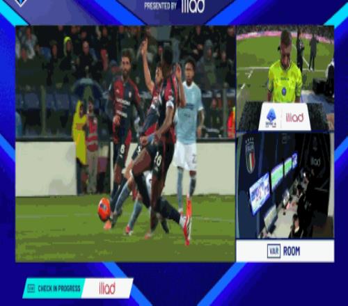 第16分鐘,米雷蒂倒地,主裁判觀看視頻回放后取消點(diǎn)球判罰