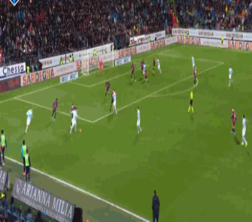 第56分鐘,坎比亞索遠(yuǎn)射,卡利亞里門將飛身撲出