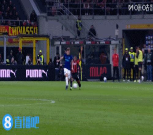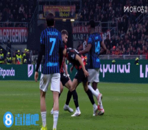 第80分鐘,米蘭進(jìn)攻被解圍,國米嘗試反擊,雙方多名球員倒地,主裁向拉比奧特出示黃牌警告↓