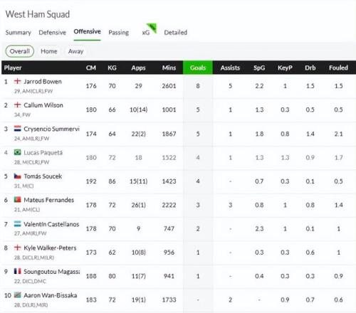 本賽季西漢姆聯的進攻表現不好,是導致他們排名不高的關鍵原因。前29輪英超過后才打入35球,在帕奎塔離隊后,本賽季英超有過進球的球員一共才8人,進球最多的是鮑文。