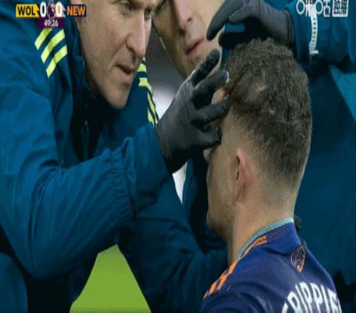 第50分鐘,馬內踢到特里皮爾面部,后者面部掛彩