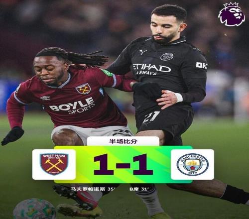 西漢姆聯(lián)1-1曼城