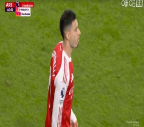 第61分鐘,阿森納連換兩人,馬丁內利、哲凱賴什替補登場