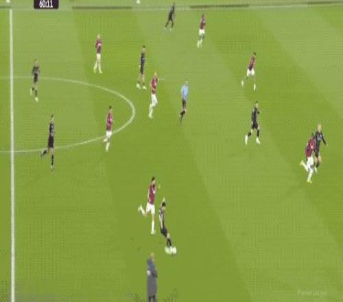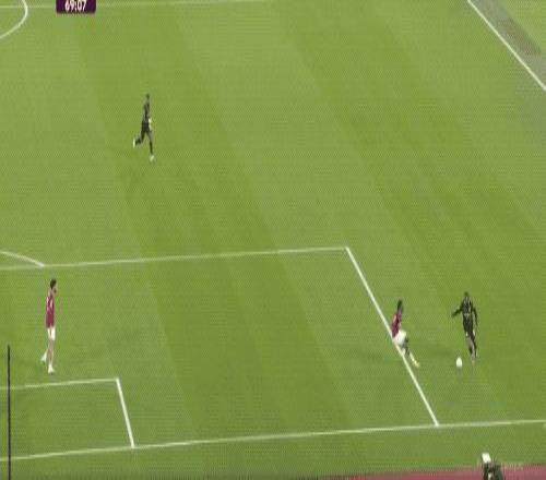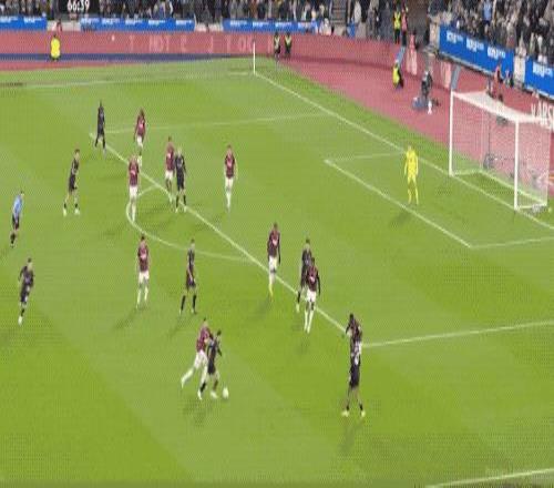 第5分鐘,努里在左路上演精彩的過人秀,西漢姆聯(lián)球員前仆后繼,完成攔截。