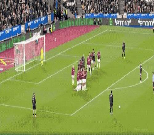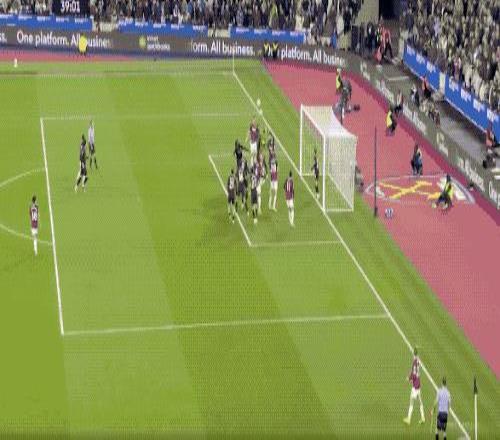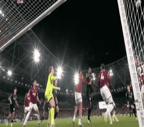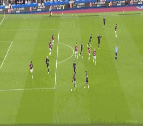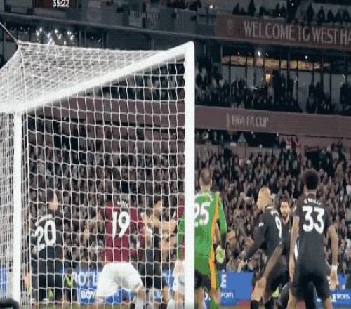 第27分鐘,努里強(qiáng)行傳中,西漢姆聯(lián)兩名防守球員起跳晃點(diǎn)了哈蘭德,哈蘭德的頭球沒能頂正部位。