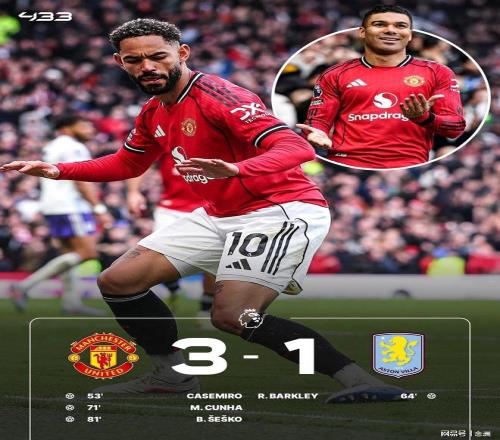 曼聯(lián)主場3-1戰(zhàn)勝阿斯頓維拉,穩(wěn)居第3并擴大領(lǐng)先優(yōu)勢。大馬丁屢次做出神撲,B費助攻卡塞米羅頭球打破僵局,巴克利扳平比分,B費再次助攻,庫尼亞破門,謝什科替補鎖定勝局。