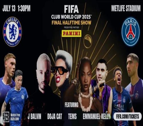 去年7月13日的世俱杯決賽,國際足聯臨時決定舉行史無前例的中場秀表演。格萊美獎得主說唱歌手Doja Cat、尼日利亞歌手Tems、雷鬼天王J Balvin聯袂表演,但最低票價并未因新增的中場娛樂秀上漲。國際足聯發布的決賽海報,表演嘉賓也占據了C位,將兩支參賽隊的球星擺在兩邊。