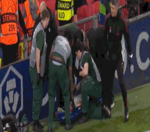第82分鐘,祝好,諾阿-朗受傷,被擔架抬出場
