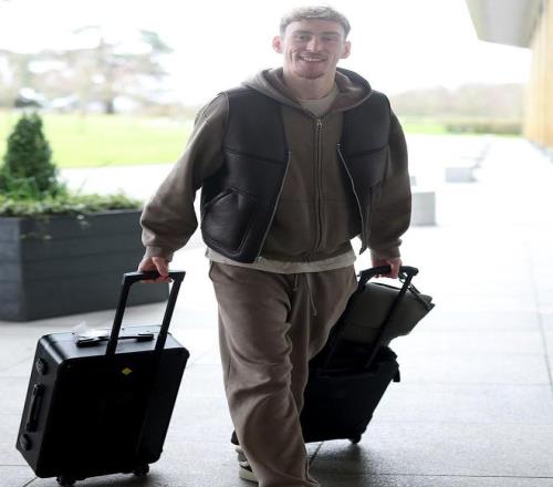 抵達基地的球員們大都神情輕松,拉什福德身穿英格蘭隊最新賽前熱身球衣,勒溫則選擇了一身極為休閑的裝扮,看起來仿佛是要出門去旅行。福登神態輕松,面對鏡頭微微一笑。