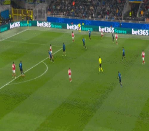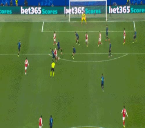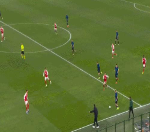 第62分鐘,薩卡獲得良機,巴斯托尼精彩放鏟破壞