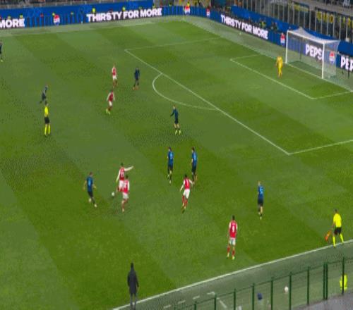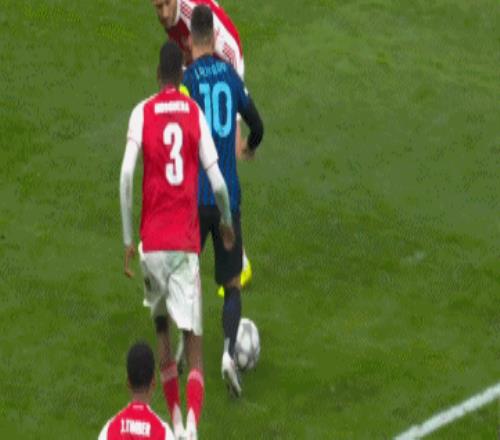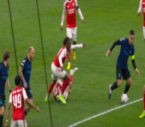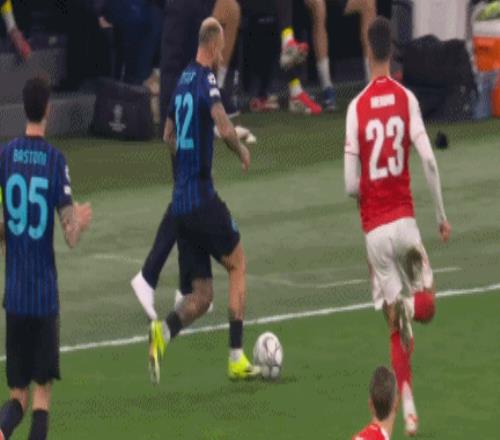 第53分鐘,勞塔羅突入禁區倒地,主裁判未予理睬