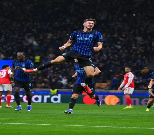 強(qiáng)強(qiáng)對決2隊(duì)沒有進(jìn)行太多的試探,第10分鐘,阿森納前場連續(xù)一腳出球配合,埃澤直傳,熱蘇斯弧頂處回做后立馬反方向包抄,斯凱利立馬分到右側(cè),廷貝爾將球掃到門前,熱蘇斯掃射入網(wǎng),1:0!熱蘇斯結(jié)束了他在歐冠賽場連續(xù)10場的進(jìn)球荒,個(gè)人兩年半第一次在歐冠進(jìn)球。第18分鐘,勞塔羅直塞禁區(qū),小圖拉姆被鏟倒后立馬起身回做,巴雷拉外腳背打門被擋出,弧頂處的蘇契奇不管三七二十一把腳遠(yuǎn)射世界波直奔死角,拉亞做出撲救動作也無濟(jì)于事,1:1!
