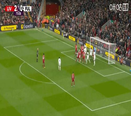 第76分鐘,利物浦發出左側角球被門將撲出,范戴克將球頂向門前被解圍